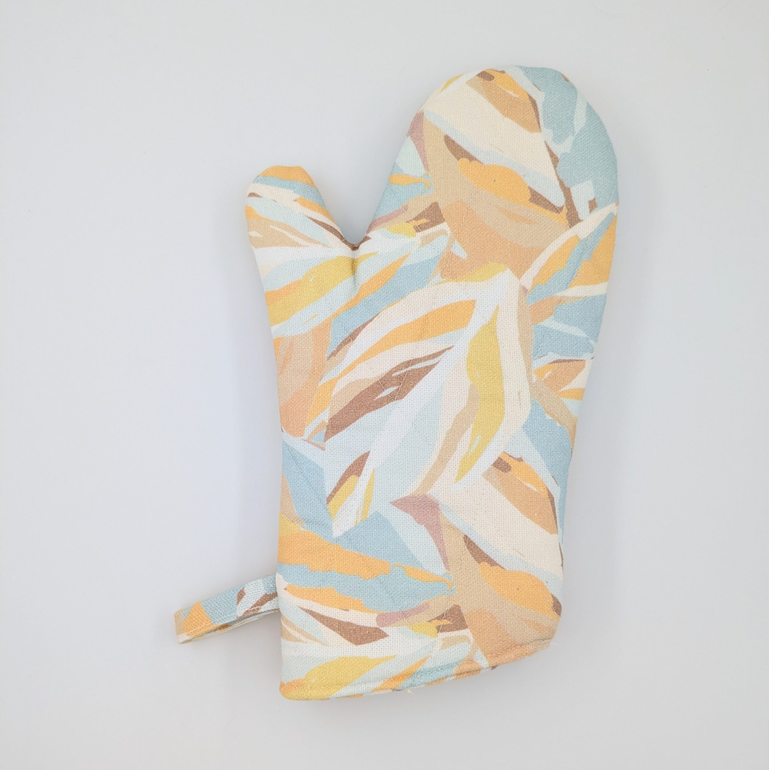 Taille du gant : 27 x 14 cm / Taille de la manique : 20 x 20 cm / Taille du tablier : 75x 63cm (sangle : 89 cm)