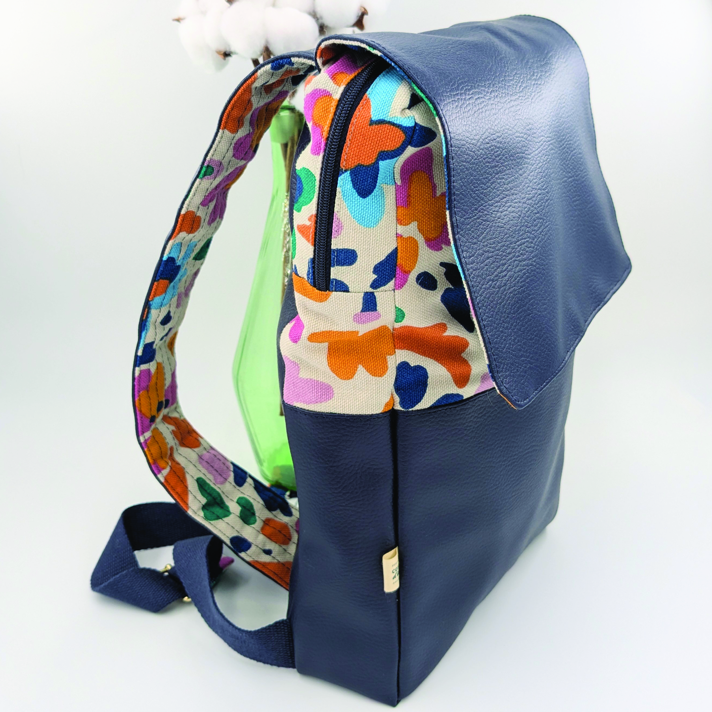 Coton- Simili cuir – Fermeture et curseurs en polyester