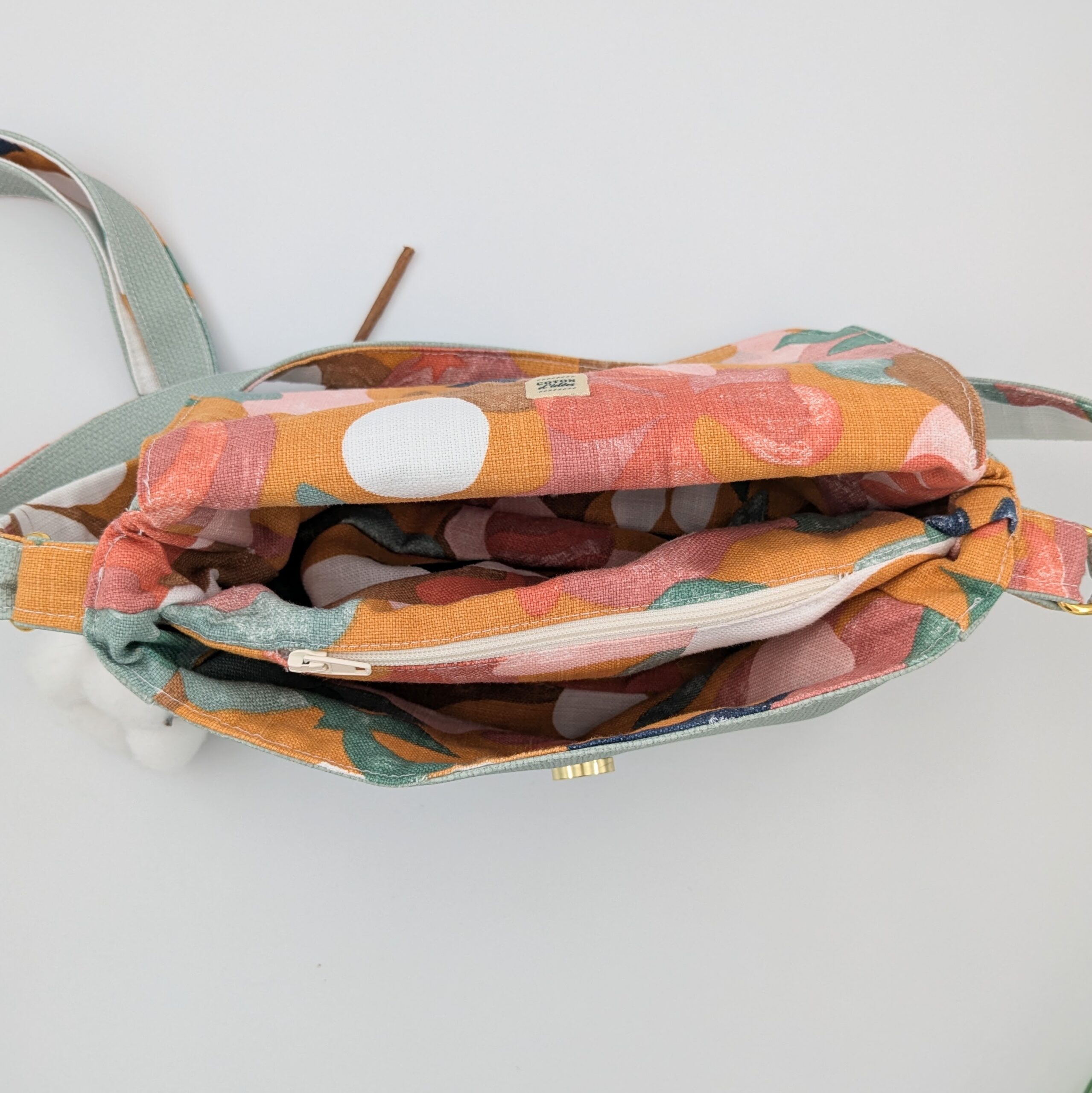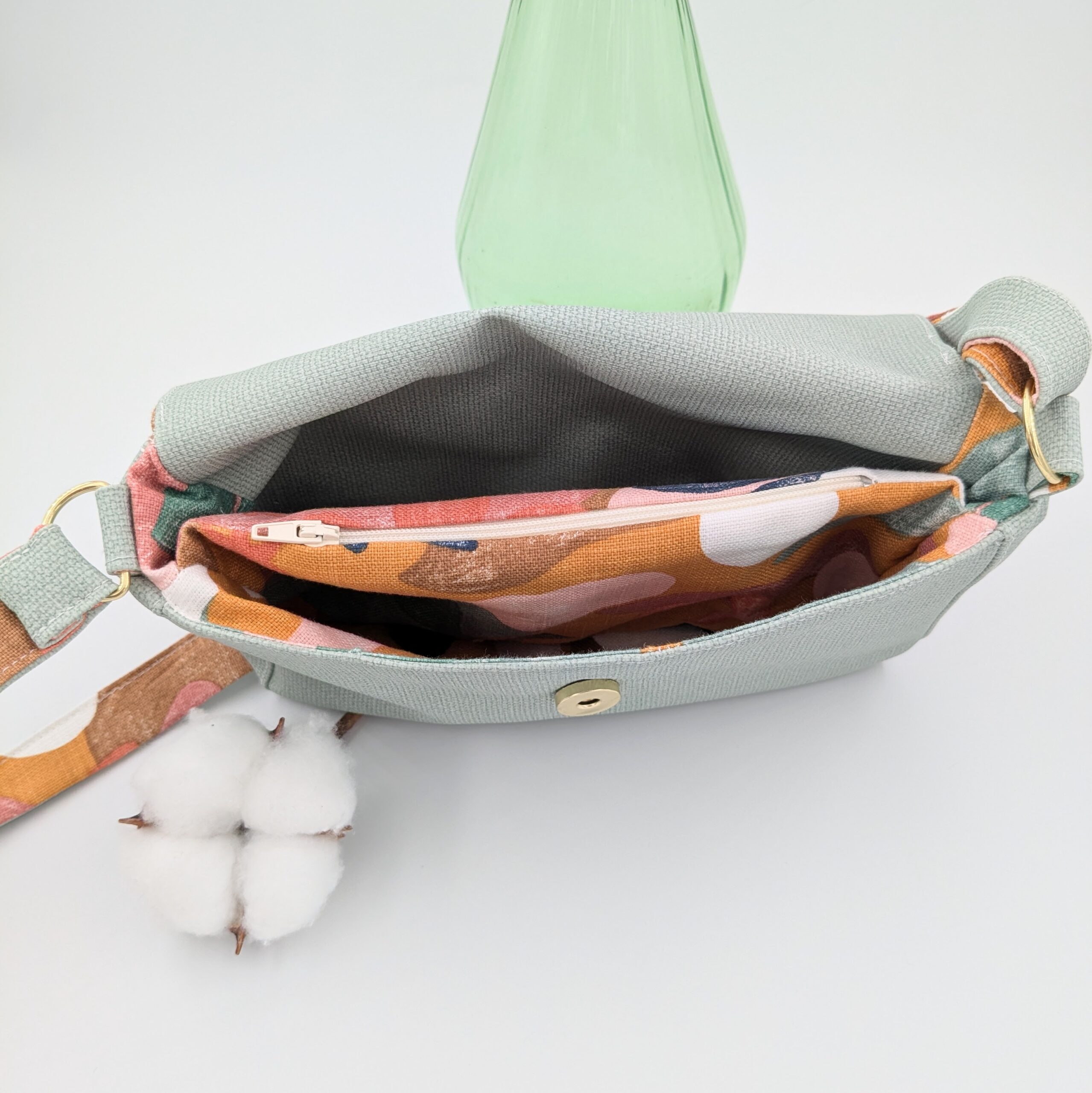 Coton – Simili cuir – demi-anneaux, coulisse et fermoir en métal – Fermeture et curseur en polyester (sac à main « Camille »)