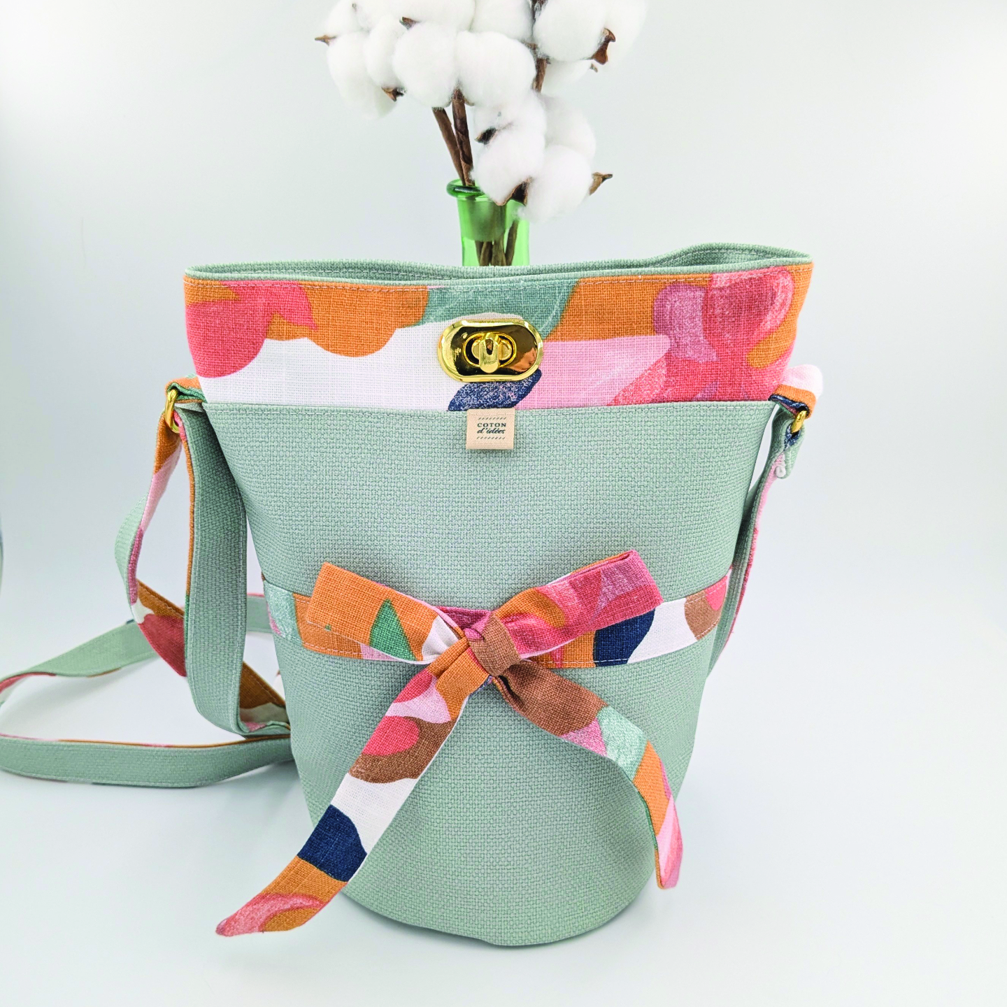 Les sacs à main « Thaïs » accentuent leur unicité par leur forme. Leur fond arrondi leur confère une silhouette douce et élégante. Le ruban de coton délicatement disposé autour du sac et leur fermoir doré sont les détails qui renforcent leur allure chic.