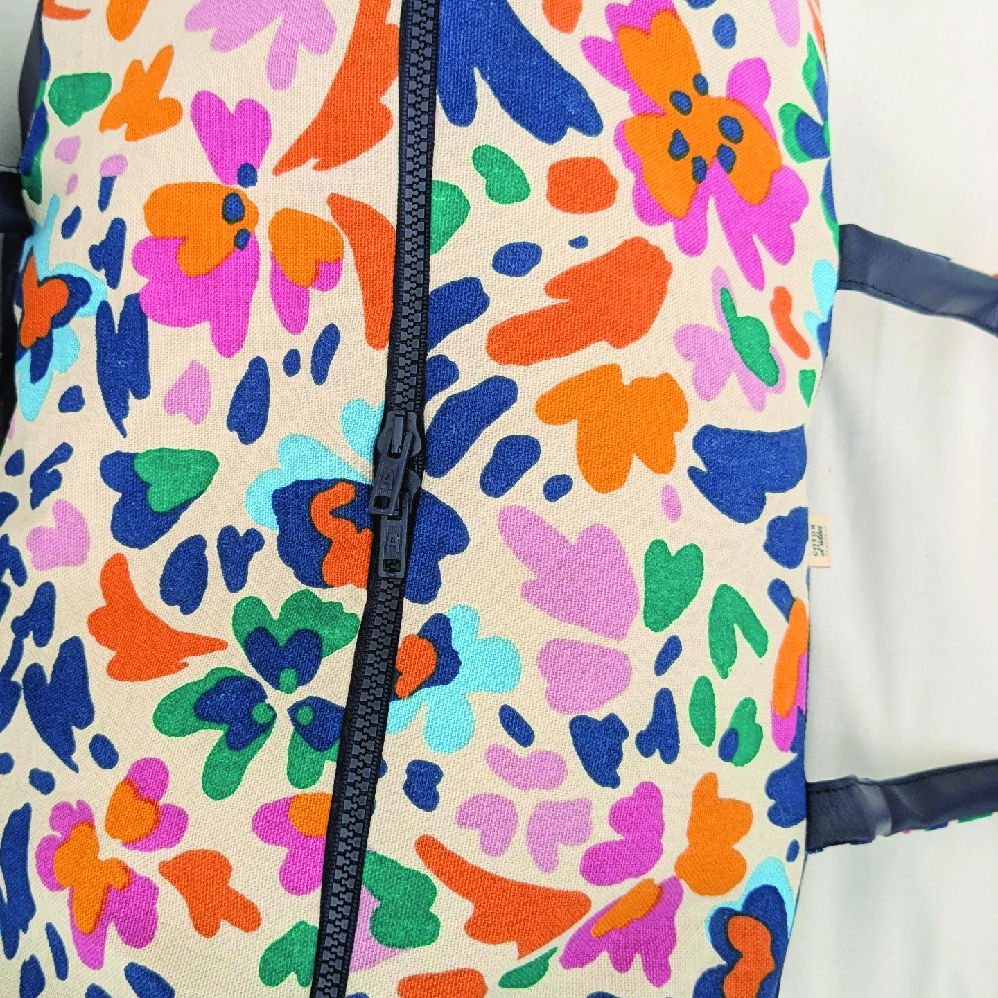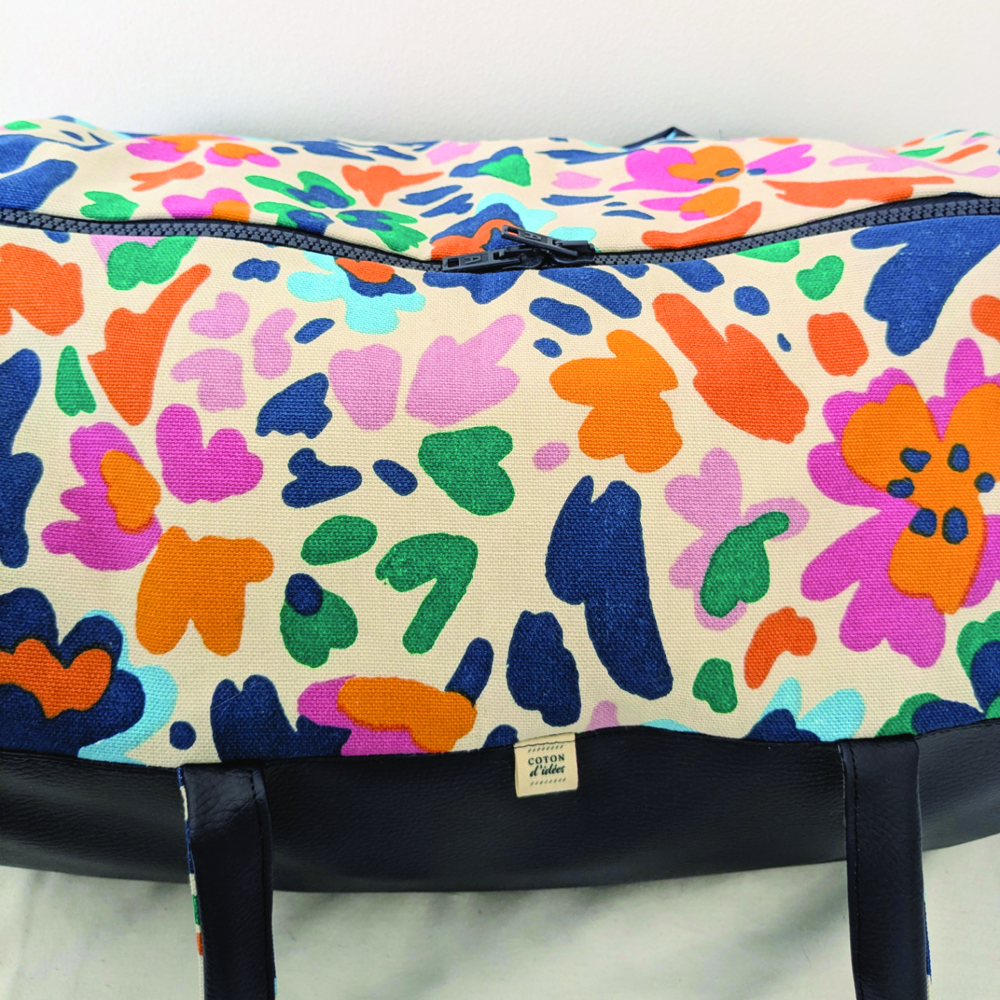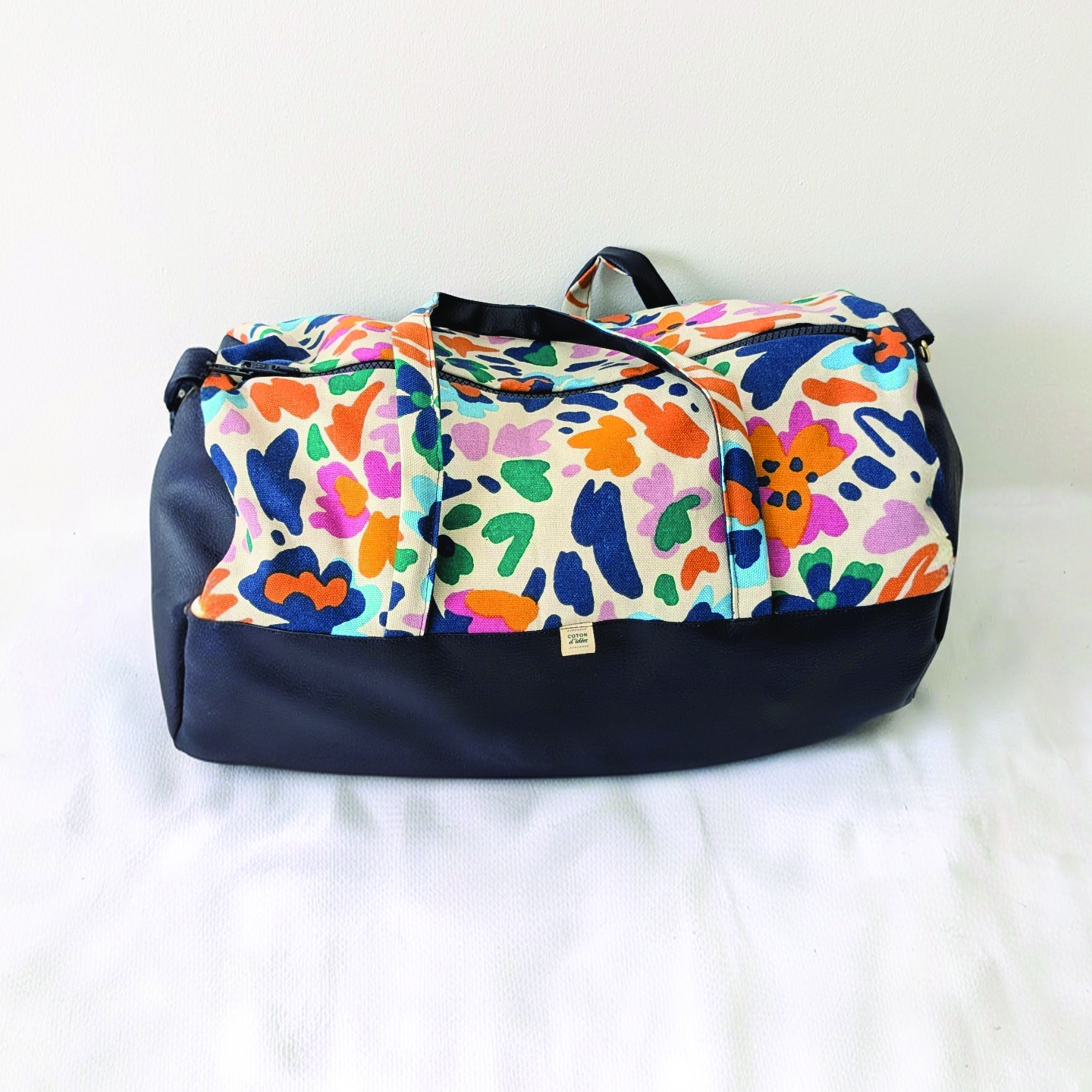 Confectionné en coton imprimé et simili cuir, il allie solidité et originalité. Sa fermeture à glissière à double curseur permet une ouverture large et pratique pour préparer facilement vos affaires avant de partir.