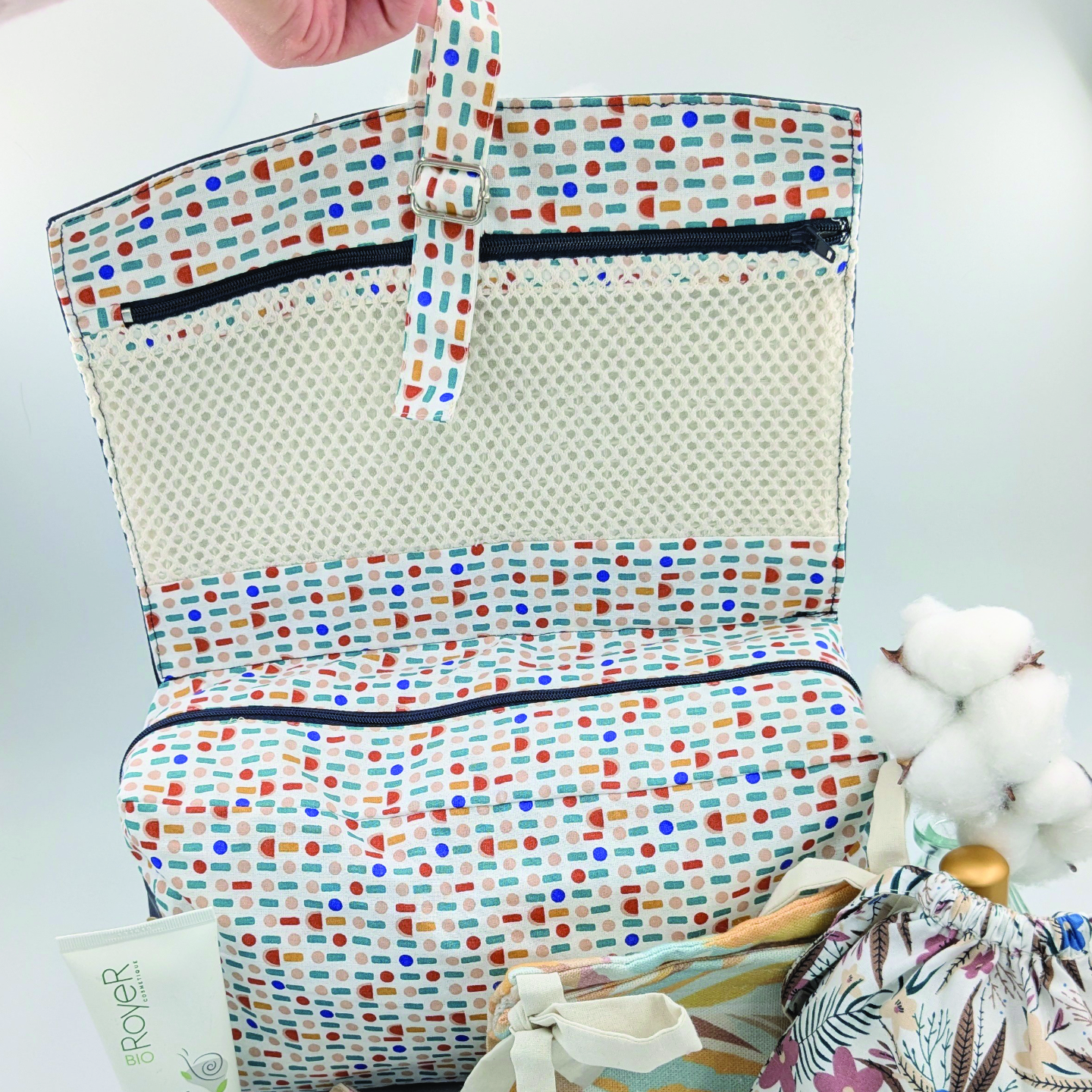 Un lavage en machine à 30°C, avec un programme doux, suffit pour prendre soin de votre trousse de toilette. En évitant le sèche-linge et le repassage, vous préservez les matières, les couleurs… et vous lui offrez une belle et longue vie à vos côtés.